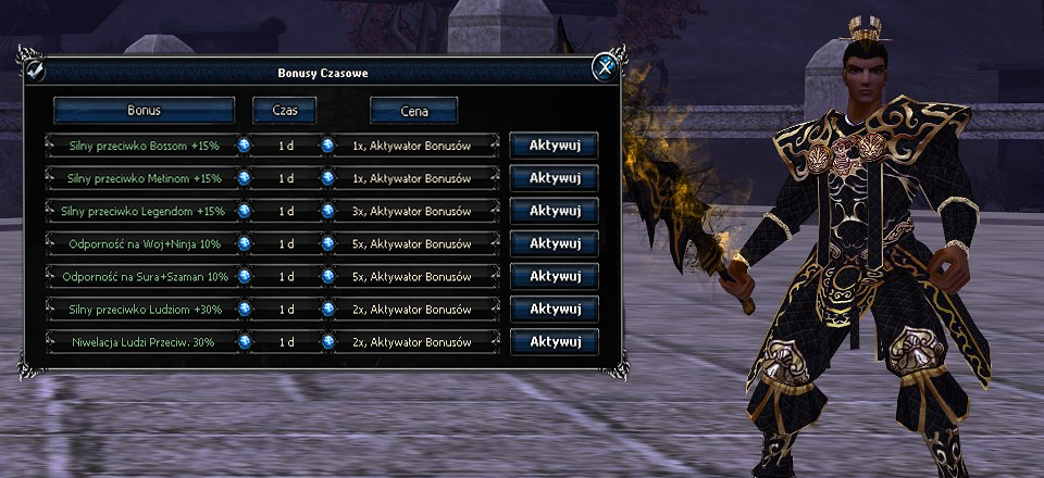 Bardzo prosty system, który wzmocni Was w PVM i PVP, jednak uruchomienie bonusów nie odbywa już się za pomocą bryłek, tylko Aktywatorów Bonusów.